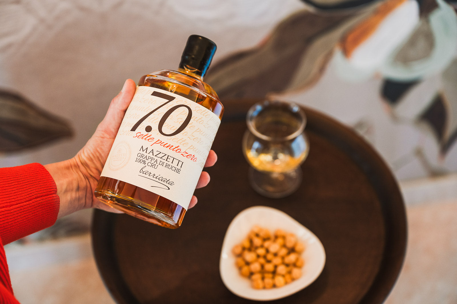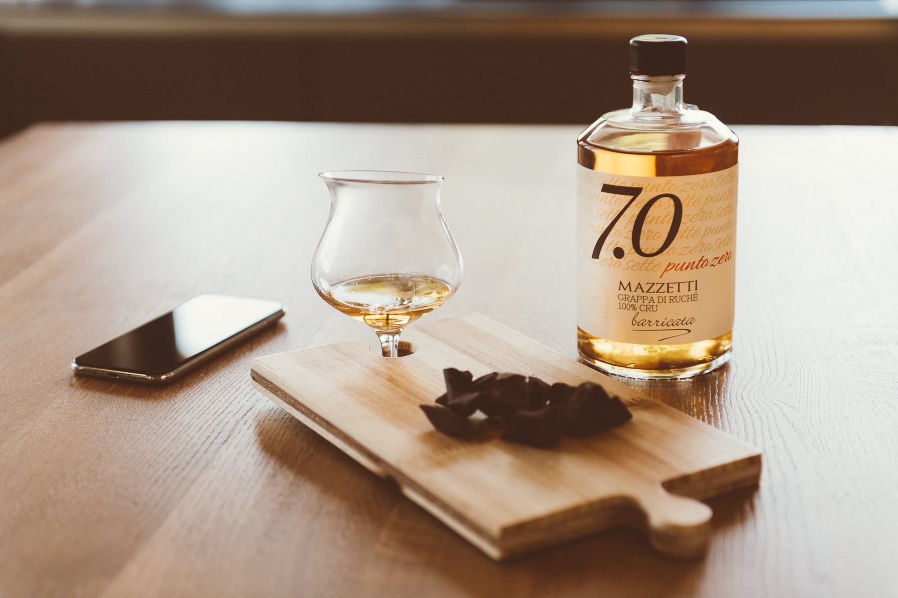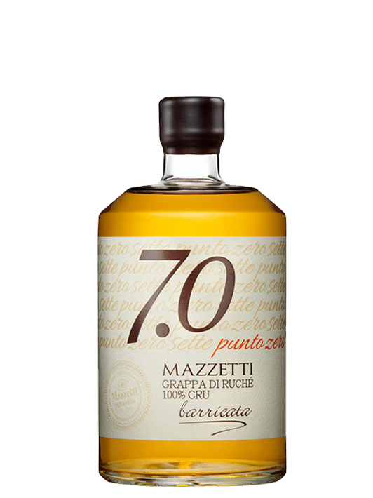 Grappa produite à base d'un cépage peu connu du Piémont, le Ruché. Les notes parfumées et originales de rose et de violettes rendent ce cépage unique. Saveur forte et complexe, harmonieuse, agréablement douce avec une excellente persistance aromatique. Cette grappa atypique allie parfaitement les arômes de fleurs et d'épices avec une riche note de violette.